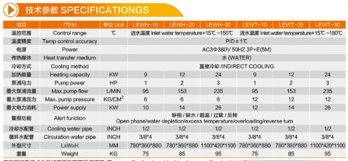 模溫機(jī)根據(jù)傳熱介質(zhì)的不同分為水溫機(jī)和油溫機(jī),水循環(huán)模溫機(jī)以水為導(dǎo)熱介質(zhì),最高溫度可達(dá)180度,水溫機(jī)根據(jù)溫度分為水溫機(jī),120度水溫機(jī),150度水溫機(jī),180度水溫機(jī)簡(jiǎn)稱高溫水溫機(jī)。高溫水溫機(jī)所有零部件均采用品牌產(chǎn)品,設(shè)備出廠前經(jīng)過(guò)48項(xiàng)檢測(cè)。嚴(yán)格按照質(zhì)量認(rèn)證體系制作,所有產(chǎn)品均符合歐盟CE認(rèn)證和UL認(rèn)證性能。