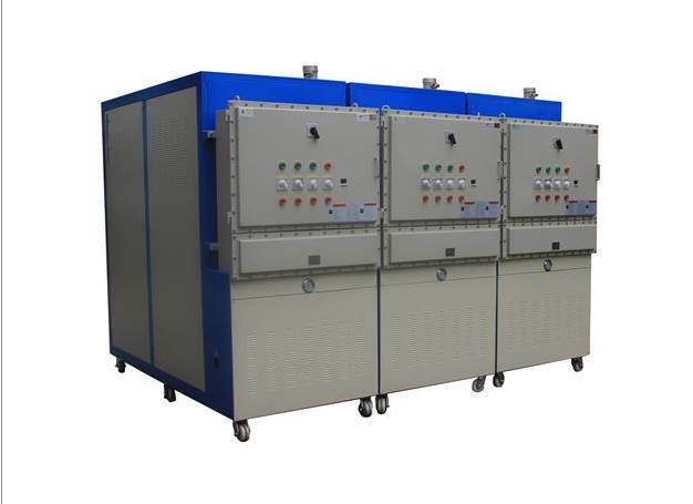 將加熱過的傳熱介質通過高溫泵浦注入到用熱設備或產品中,與其進行熱交換,損失熱量后的傳熱介質循環(huán)回加熱裝置繼續(xù)加熱,如此反復,通過溫控裝置控制其溫度,使之達到工藝生產所需要的溫度.根據傳熱介質的不同分防爆水溫機和防爆油溫機兩大類型.根據使用環(huán)境和使用溫度而定,使用溫度上來說分為200度/300度/350度三大類型,根據客戶提供詳細的工藝,由專業(yè)人員為您選配合適的機型。
