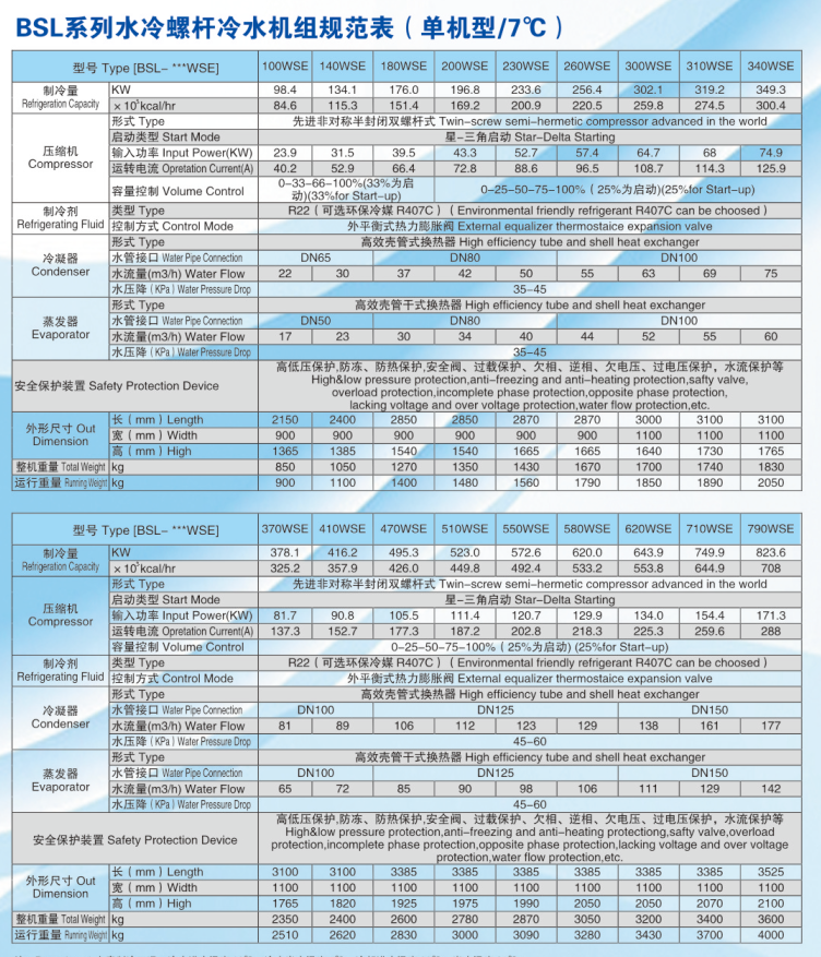 螺桿式工業冷水機結構緊湊,運轉平穩,機組的冷凝器,蒸發器均采用傳熱管,主機選用的全封閉渦旋式壓縮機,具有結構緊湊,體積小重量輕,安裝位置小等諸多優點.的能量控制系統,根據負荷變化自運調節機組啟停,更加.運行時電腦控制系統會依據客戶端,熱負荷變化來改變機組的能量輸出.微電腦通過監控測量的實際負荷,與用戶的設定之差異迅速判斷到所需的能量.并且在多臺系統中,以冷量輸出時最少電能消耗的方式工作,不但全負荷時體現出的性能,即使在部分負荷時也有很高的運行效率.操作簡便直觀,機組采用微電腦程序控制器,中文顯示/數碼管顯示,按照屏幕上/面板上的提示菜單選擇操作,直接用手指輕觸按鈕,即可啟動機組,面板可隨時顯示機組的運行狀態,并且可以文字表格參數的方式顯示