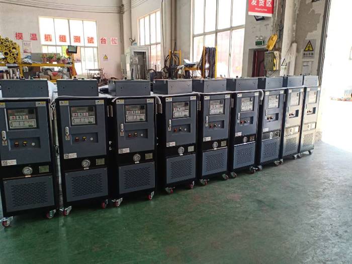 模溫機是指將加熱過的傳熱介質通過高溫泵浦注入到用熱設備或產品中,與其進行熱交換,損失熱量