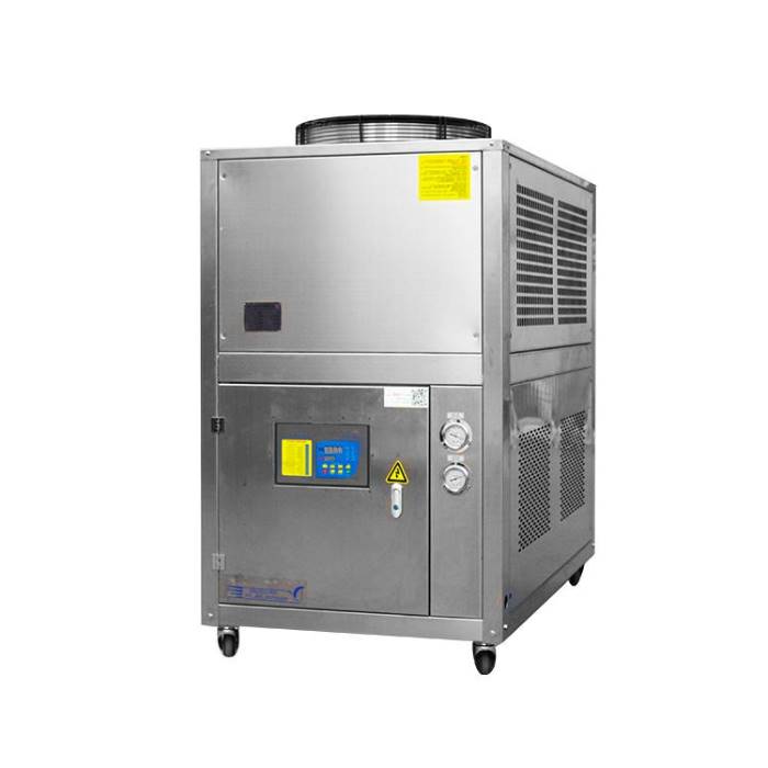 工業冷水機是一種能提供恒溫、恒流、恒壓的冷卻水設備。冷水機工作原理是先向機內水箱注入一定量的水,通過冷水機制冷系統將水冷卻,再由水泵將低溫冷卻水送入需冷卻的設備,由同步電機凍水將熱量帶走后溫度升高再回流到水箱,達到冷卻的作用。冷卻水溫可根據要求自動調節,長期使用可節約用水。因此,冷水機是一種的設備。