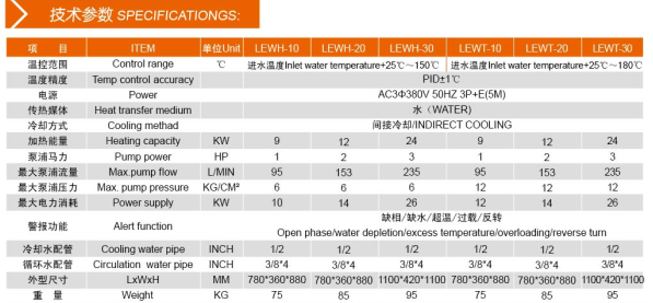 水式高溫模溫機提高產品品質:PID自動控制溫度,迅速達到所需的溫度且始終保持恒溫,大幅降低成型品之不良率,產品品質。水式高溫模溫機:兩段式加熱結構設計,可視所需之溫度增減電力,并配合特殊之發熱構造,可省時省電。水式高溫模溫機保護裝置:無熔絲開關,缺水或缺油,溫度異常及泵浦過負荷等自動警示系統。回路能自動切斷,,水式高溫模溫機控溫:選擇配備的PID智能型自動演算的溫度控制器,能顯示和控制模具溫差于所需溫度±1℃ 內。水式高溫模溫機售后服務:全國設多個售后服務點,整機保修一年,永久支持免費技術咨詢。