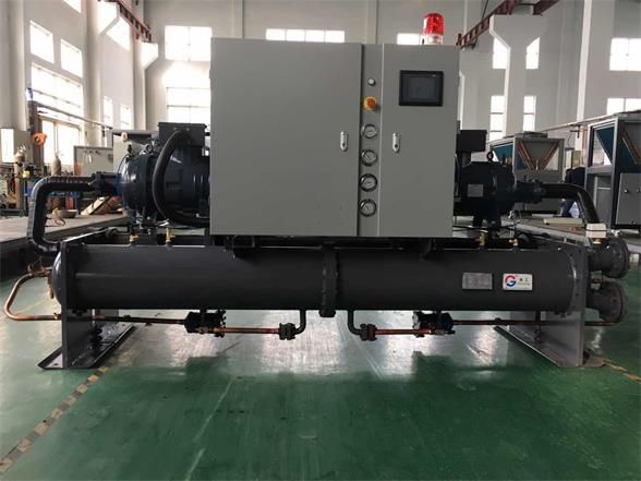 水冷冷水螺桿機使用螺桿式壓縮機,是以采用螺桿式壓縮機而命名的,冷媒在蒸發器內與載冷劑換熱并氣化后,經壓縮機進行絕熱壓縮,變成高溫高壓狀態。被壓縮后的氣體冷媒進入冷凝器中,經冷凝放熱后變為液態冷媒,液態冷媒經節流閥膨脹并吸熱變成氣液混合物。其中低溫低壓下的液態冷媒在蒸發器中吸收載冷劑(水或其他溶液)的熱量,再次成為氣態冷媒并重新進入壓縮機開始新的壓縮循環過程。