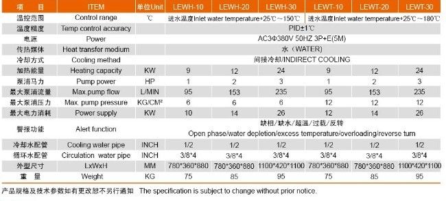 水加熱器的配置;管路防爆裝置;管路系統(tǒng)304不銹鋼一體成型,開機自動排氣,采用臺灣元欣循環(huán)泵(可按客戶要求選購),溫控器日本歐姆龍E5CZ控溫PID±1℃。加熱冷卻雙PID控制,設(shè)定值、輸出值和回水溫度三項數(shù)據(jù)顯示,熱媒By-pass泄壓回路,加熱功率切換功能,按客戶要求制作,隔離式電控箱,延長電器使用,防護(hù)措施,故障原因顯示,報警指示燈及警報蜂鳴器兩組方式示警,運行狀況及監(jiān)測即時顯示,錯缺相保護(hù),總電源過電流無熔絲斷路器,具備泵浦過載、反轉(zhuǎn)保護(hù),壓力不均勻保護(hù),缺水保護(hù)、加熱異常保護(hù)等功能。維修保養(yǎng)無需人員。
